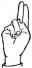 На ћирилици написано ДРИНКА ВУЛОВИЋ састоји се из 13 слова [?]. Исписано ћириличном једноручном азбуком за глувонеме:
